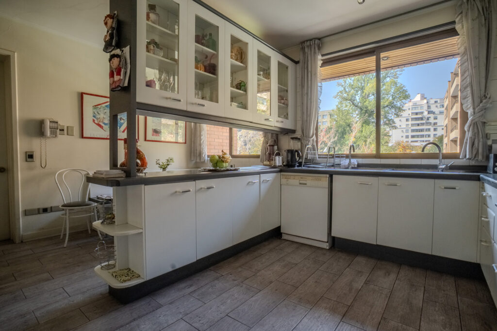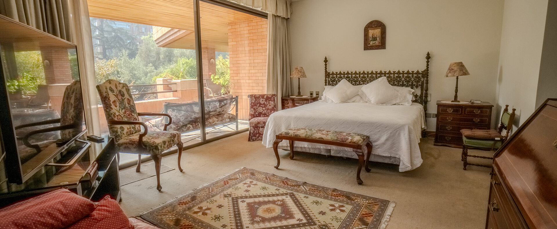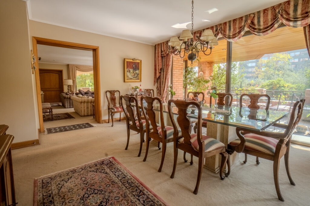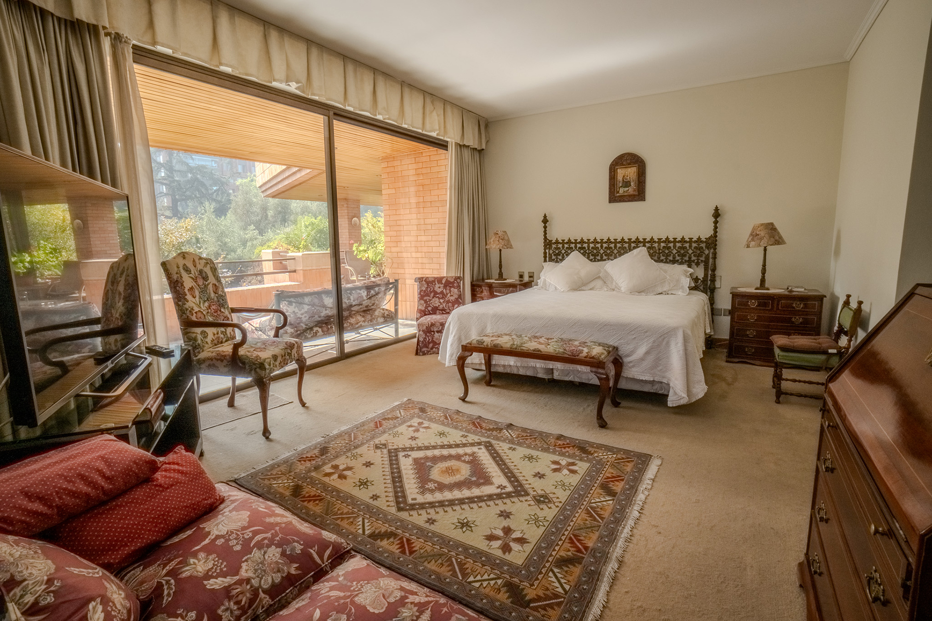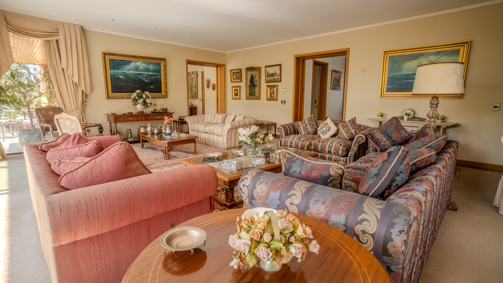 3 dormitorios (Principal en Suite) + 3 Baños (incluye visita) + Sala de Estar + Dos Dormitorios de Servicio + Baño + 4 Estacionamientos + 1 Bodega.