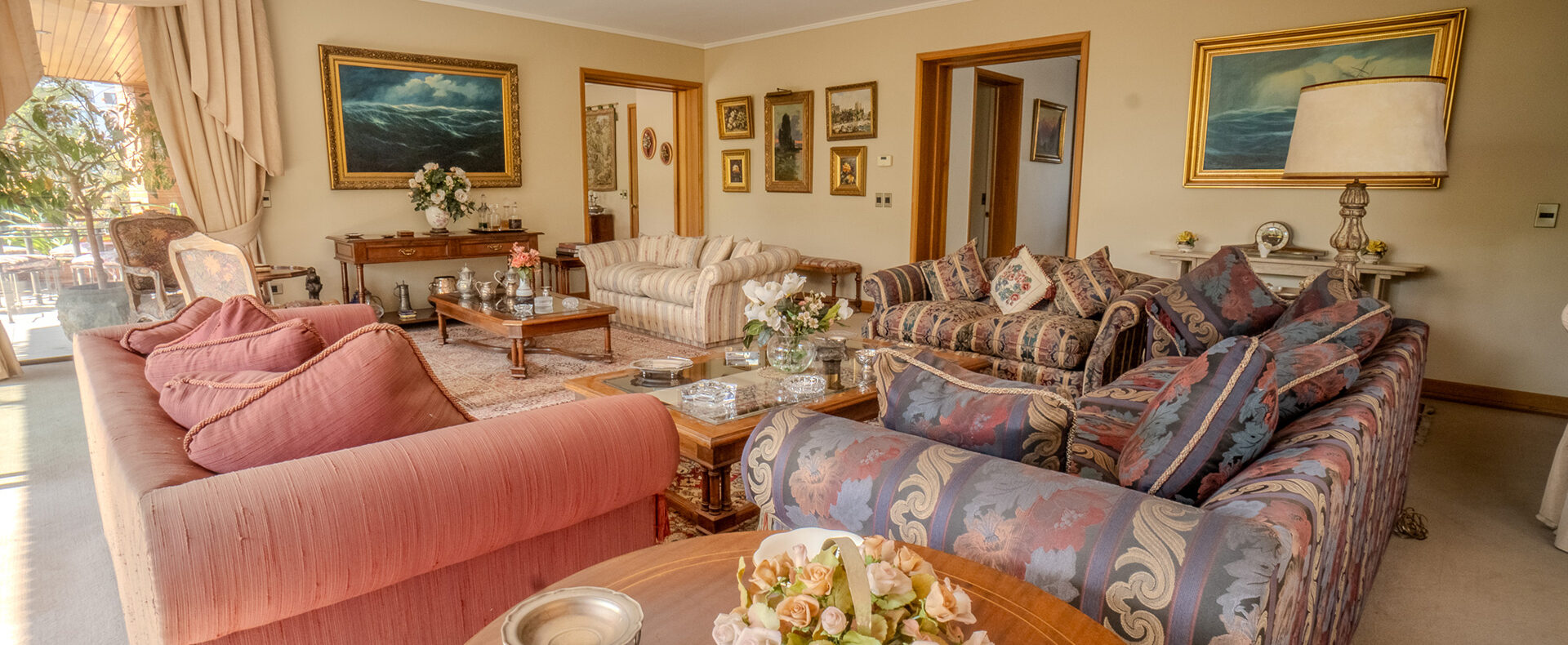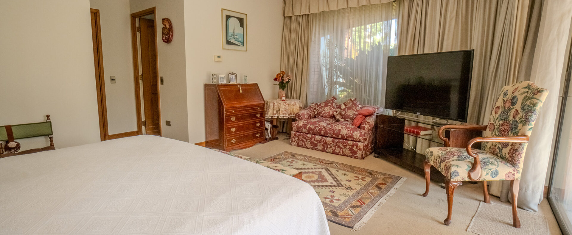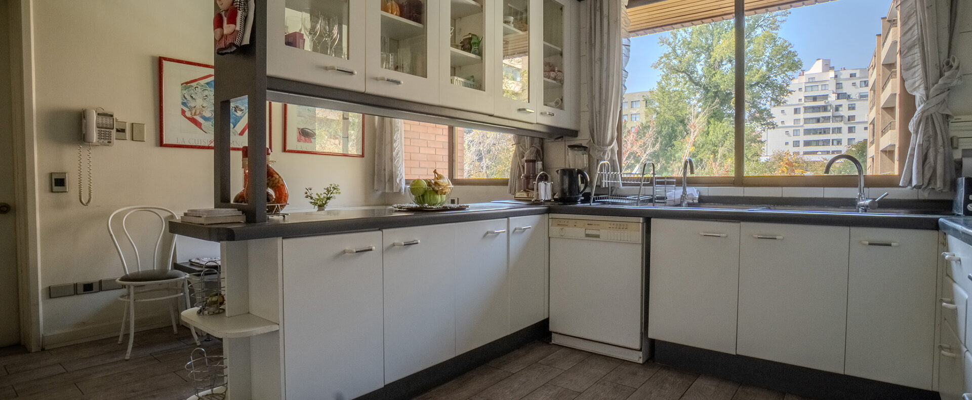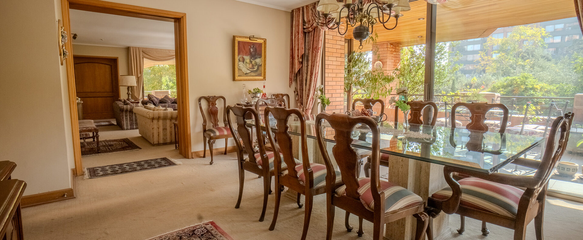 3 dormitorios (Principal en Suite) + 3 Baños (incluye visita) + Sala de Estar + Dos Dormitorios de Servicio + Baño + 4 Estacionamientos + 1 Bodega.