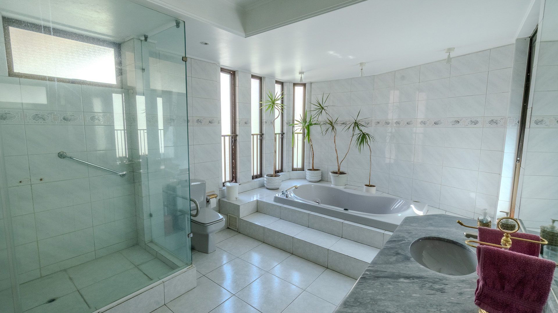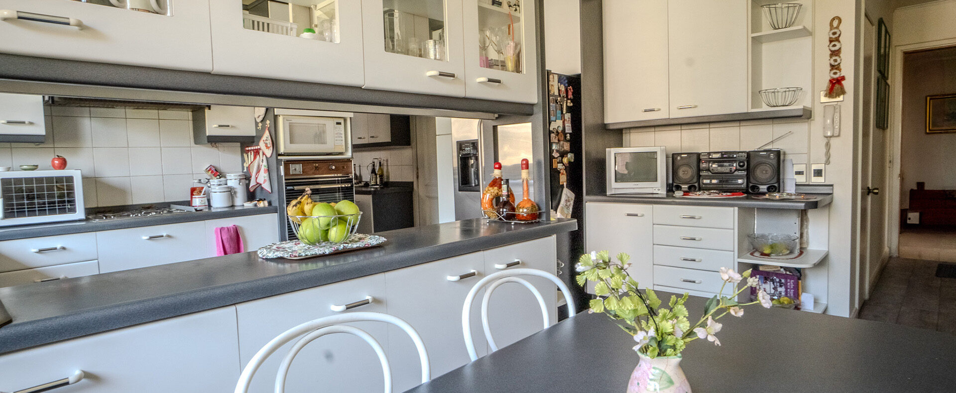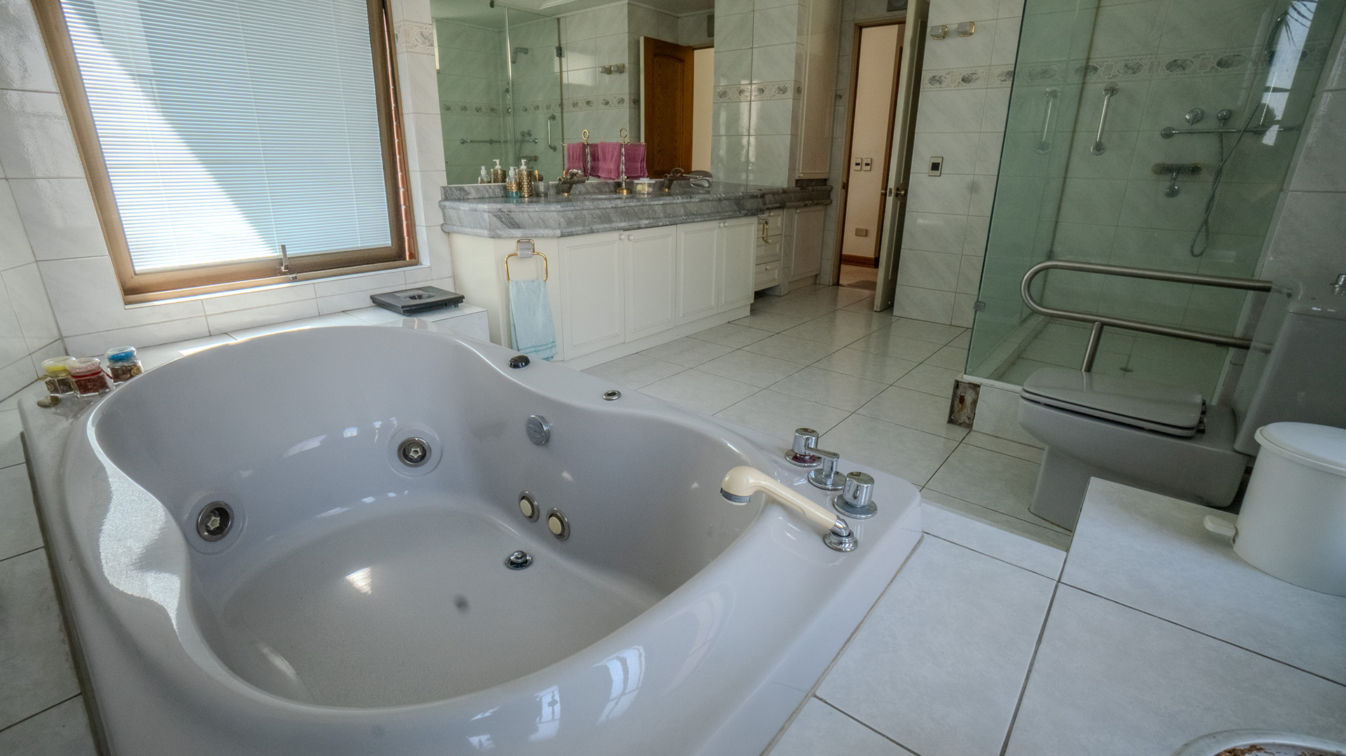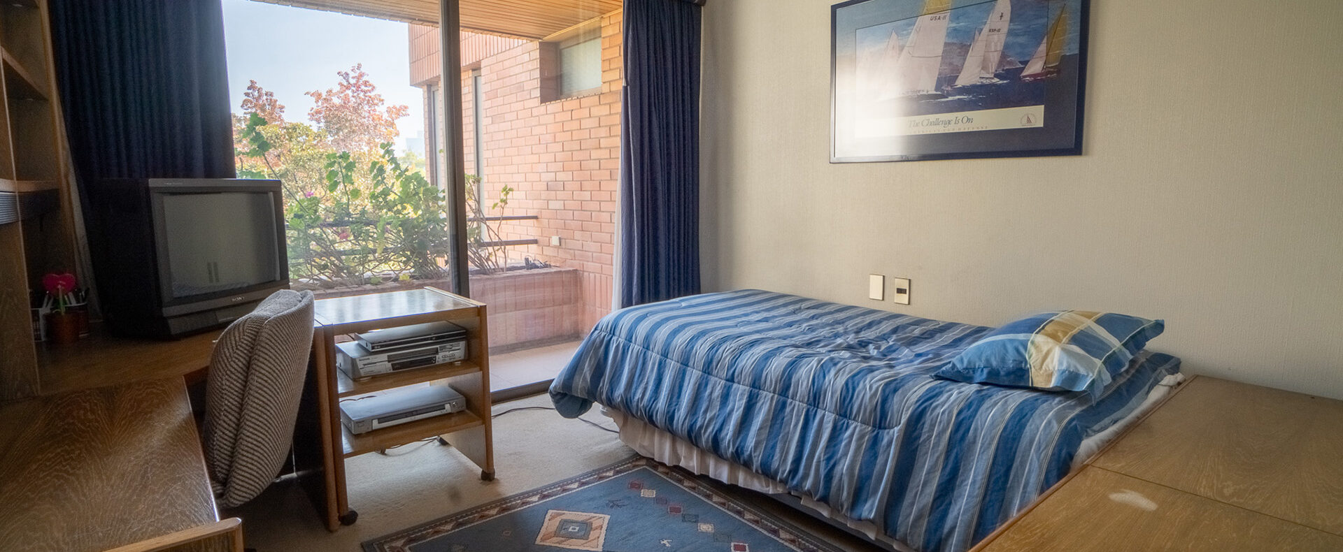 3 dormitorios (Principal en Suite) + 3 Baños (incluye visita) + Sala de Estar + Dos Dormitorios de Servicio + Baño + 4 Estacionamientos + 1 Bodega.